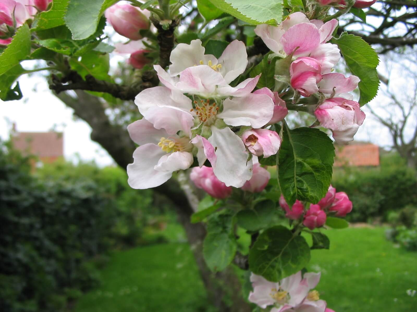 Part of my fondess of apple blossom is that I like the combination of the shades of pink and sun-dappled new leaf-green. They were also the first picture I took when I first got a digital camera (Canon PowerShot A60 – I like Canon, I upgraded to the PowerShot S2 IS before the SX40) way back in 2004.